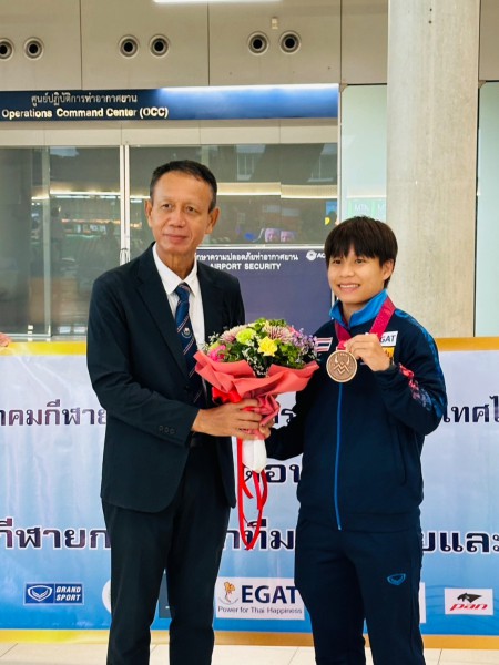 โดยมีพลตรี อินทรัตน์ ยอดบางเตย นายกกิตติมศักดิ์สมาคมกีฬายกน้ำหนักสมัครเล่นแห่งประเทศไทย พร้อมด้วยคณะกรรมการบริหารสมาคมฯ ประกอบด้วย พลเอก วิสุทธิ์ เดชสกุล เลขาธิการฯ ,พลอากาศโท วัฒนชัย เจริญรัตน์ กรรมการ/ประธานฝ่ายเตรียมนักกีฬา, นายสมศักดิ์ กาญจนาคาร กรรมการ/ประธานฝ่ายสิทธิประโยชน์, นางสาวปัทมา ลำเต็ม ที่ปรึกษาฯ และนางธรพรรษธร วจีธัญเจริญกุล หัวหน้าฝ่ายประชาสัมพันธ์ให้การต้อนรับพร้อมมอบช่อดอกไม้เพื่อแสดงความยินดี