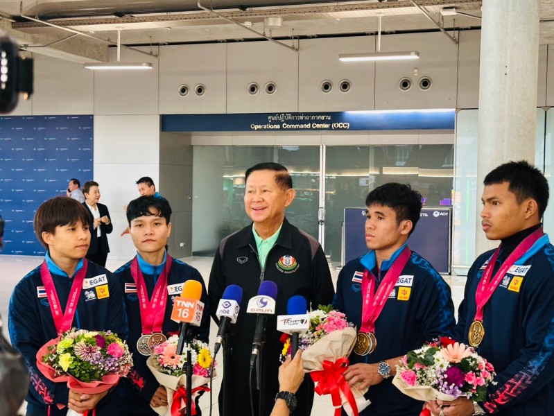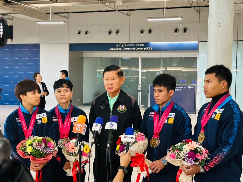 จอมพลังชุดชิงชนะเลิศแห่งโลกหอบเหรียญกลับบ้านแล้ว-“เสธ.ยอด” นำคณะต้อนรับอบอุ่น