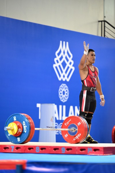 รุ่น 60 กิโลกรัม ชาย แข่งขันรวม 6 คน ทีมไทยส่ง “ฟ่าง” จ่าตรี ธีรพงศ์ ศิลาชัย เจ้าของเหรียญเงินโอลิมปิกเกมส์ “ปารีส 2024“ ลงชิงชัย โดยท่าสแนทช์ ยกผ่าน 3 ครั้งรวด 126 กิโลกรัม, 129 กิโลกรัม, 131 กิโลกรัม ตามลำดับ/ ท่าคลีนแอนด์เจิร์ก ธีรพงศ์ ออกมายกด้วยความมั่นใจ ท่ามกลางเสียงเชียร์ของแฟนกีฬาชาวไทย ครั้งแรกยกผ่านที่ 162 กิโลกรัม, ครั้งที่ 2 ยกผ่านที่ 165 กิโลกรัม จากนั้นครั้งที่ 3 เรียกเหล็ก 173 กิโลกรัม ยกผ่านสำเร็จ พร้อมทุบสถิติโลกที่วางมาตรฐานไว้ 172 กิโลกรัม ไปแบบสะใจกองเชียร์ รวมทั้งขยับน้ำหนักรวมไปอยู่ที่ 304 กิโลกรัม ผงาดคว้าเหรียญทองแรกให้กับทัพจอมพลังไทย