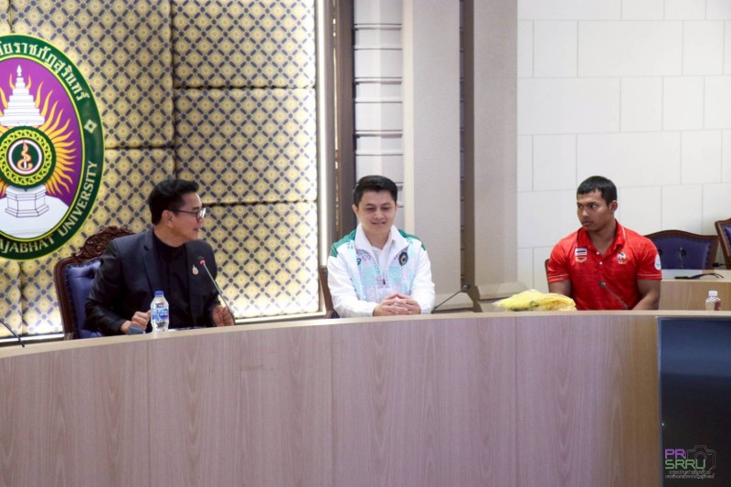 วันที่ 14 มกราคม 2569 เวลา 10.30 น. ณ ห้องประชุมฉัททันต์ ชั้น 2 อาคารสำนักงานอธิการบดี (อาคาร 31) มหาวิทยาลัยราชภัฏสุรินทร์ นายวีรพล วิชุมา นักศึกษาหลักสูตรวิทยาศาสตรบัณฑิต (วท.บ.) ชั้นปีที่ 3 สาขาวิชาวิทยาศาสตร์การกีฬา คณะครุศาสตร์ มหาวิทยาลัยราชภัฏสุรินทร์ เข้ามอบเสื้อทีมชาติไทยแก่ รองศาสตราจารย์ ดร.ฉลอง สุขทอง อธิการบดีมหาวิทยาลัยราชภัฏสุรินทร์ ภายหลังจากเสร็จสิ้นการแข่งขันกีฬาซีเกมส์ ครั้งที่ 33 เมื่อเดือนธันวาคมที่ผ่านมา และคว้าเหรียญทองยกน้ำหนัก รุ่น 71 กิโลกรัม ชาย มาครองได้สำเร็จ พร้อมทำลายสถิติโลกและเอเชีย ท่าคลีนแอนด์เจิร์ก 195 กิโลกรัม และทำลายสถิติโลกและเอเชีย น้ำหนักรวม 347 กิโลกรัม