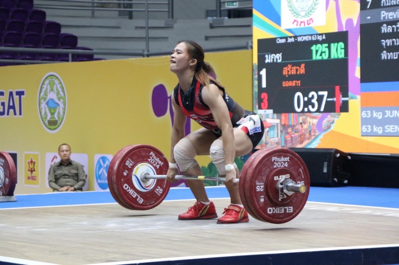 รุ่น 53 กิโลกรัม หญิง “ออย” สุรจนา คำเบ้า ดีกรีเหรียญทองแดง “โอลิมปิก 2024” ลงแข่งชันให้กับชมรมยกน้ำหนักกองทัพบก ไม่ทำให้กองเชียร์ผิดหวัง กระชาก 3 เหรียญทองสำเร็จ สแนทช์ 85 กิโลกรัม, ท่าคลีนแอนด์เจิร์ก 110 กิโลกรัม, น้ำหนักรวม 195 กิโลกรัม/ กชกร โคตรประทุม จาก โรงเรียนกีฬาจังหวัดชลบุรี เอ รับ 2 เหรียญเงิน ท่าคลีนแอนด์เจิร์ก 91 กิโลกรัม, น้ำหนักรวม 159 กิโลกรัม และ 1 เหรียญทองแดง ท่าสแนทช์ 68 กิโลกรัม/ เปรมศิริ บุญพิทักษ์ จากโรงเรียนกีฬาเทศบาลนครนครสวรรค์ เอ รับ 1 เหรียญเงิน ท่าสแนทช์ 72 กิโลกรัม และ 2 เหรียญทองแดง ท่าคลีนแอนด์เจิร์ก 86 กิโลกรัม, น้ำหนักรวม 158 กิโลกรัม