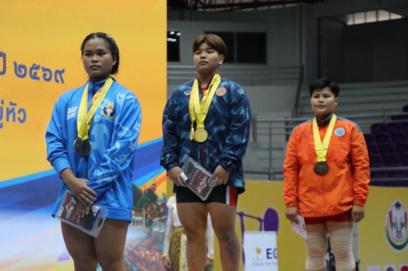 “ภัทรธิดา วงษ์สิงห์” จากโรงเรียนกีฬาเทศบาลนครนครสวรรค์ เอ ฟอร์มเฉียบเก็บเรียบ 3 เหรียญทอง รุ่น 77 กิโลกรัม หญิง ขณะที่ “วรพรต นาสุริวงศ์” จากโรงเรียนกีฬาเทศบาลนครนครสวรรค์ เอ คว้า 2 เหรียญทอง และ 1 เหรียญเงิน ส่วน “ธีรภัทร โสภาลัย” จากโรงเรียนกีฬาเทศบาลนครนครราชสีมา บี รับ 1 เหรียญทอง และ 2 เหรียญเงิน รุ่น 88 กิโลกรัม ชาย ในศึก EGAT ยกน้ำหนักชิงชนะเลิศแห่งประเทศไทย ประจำปี 2569 ระดับประชาชน ชิงถ้วยพระราชทานพระบาทสมเด็จพระเจ้าอยู่หัว ที่โรงยิมเนเซียมเทศบาลนครหาดใหญ่ สนามกีฬาจิระนคร อำเภอหาดใหญ่ จังหวัดสงขลา