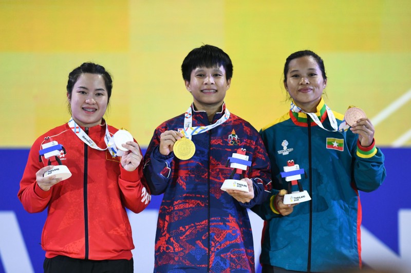 ส่วนเหรียญทองเป็นของ ลูลัค เดียนา ตรี วิจายานา จากอินโดนีเซีย 184 กิโลกรัม (ท่าสแนทช์ 84 กิโลกรัม, ท่าคลีนแอนด์เจิร์ก 100 กิโลกรัม), เหรียญทองแดง ธิ ธู ตรัง เหงียน จากเวียดนาม 181 กิโลกรัม (ท่าสแนทช์ 83 กิโลกรัม, ท่าคลีนแอนด์เจิร์ก 98 กิโลกรัม)