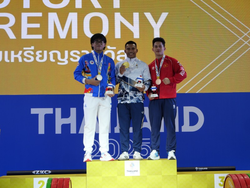 ส่วนเหรียญเงิน เป็นของ อัลเบิร์ต เอียน เดลอส ซานโตส จากฟิลิปปินส์ 324 กิโลกรัม (ท่าสแนทช์ 138 กิโลกรัม, ท่าคลีนแอนด์เจิร์ก 186 กิโลกรัม)/ เหรียญทองแดง ดุค ตอน เหงียน จากเวียดนาม 305 กิโลกรัม (ท่าสแนทช์ 135 กิโลกรัม, ท่าคลีนแอนด์เจิร์ก 170 กิโลกรัม)