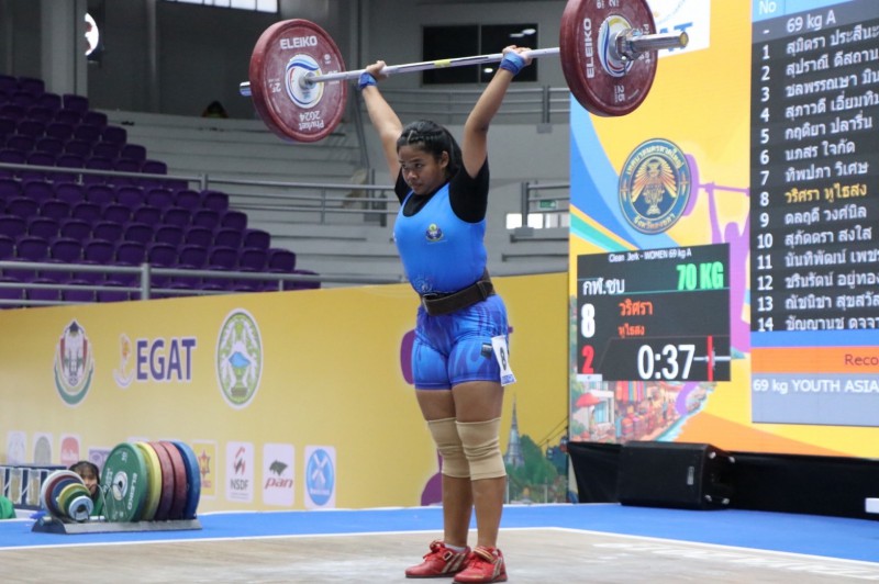 เริ่มจาก 69 กิโลกรัมหญิง นันทิพัฒน์ เพชรเนียม จากโรงเรียนกีฬาเทศบาลนครนครราชสีมา เอ เหมา 3 เหรียญทอง ท่าสแนทช์ 72 กิโลกรัม, ท่าคลีนแอนด์เจิร์ก 91 กิโลกรัม, น้ำหนักรวม 163 กิโลกรัม/ ชลพรรณษา มินบำรุง โรงเรียนกีฬาเทศบาลนครนครสวรรค์ เอ รับ 3 เหรียญเงิน ท่าสแนทช์ 71 กิโลกรัม, ท่าคลีนแอนด์เจิร์ก 90 กิโลกรัม, น้ำหนักรวม 161 กิโลกรัม/ วริศรา หูไธสง จากโรงเรียนกีฬาจังหวัดชลบุรี บี รับ 3 เหรียญทองแดง ท่าสแนทช์ 61 กิโลกรัม, ท่าคลีนแอนด์เจิร์ก 70 กิโลกรัม, น้ำหนักรวม 131 กิโลกรัม