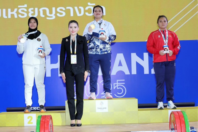 พลตรีหญิง ท่านผู้หญิงอรอนงค์ ปิยนาฏวชิรพัทธ์ เป็นประธานมอบเหรียญรางวัลนักกีฬายกน้ำหนัก ในการแข่งขันซีเกมส์ ครั้งที่ 33