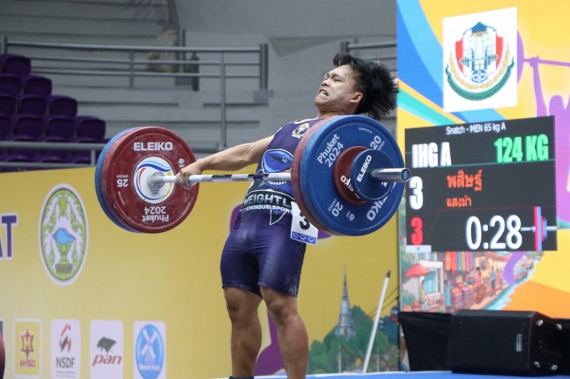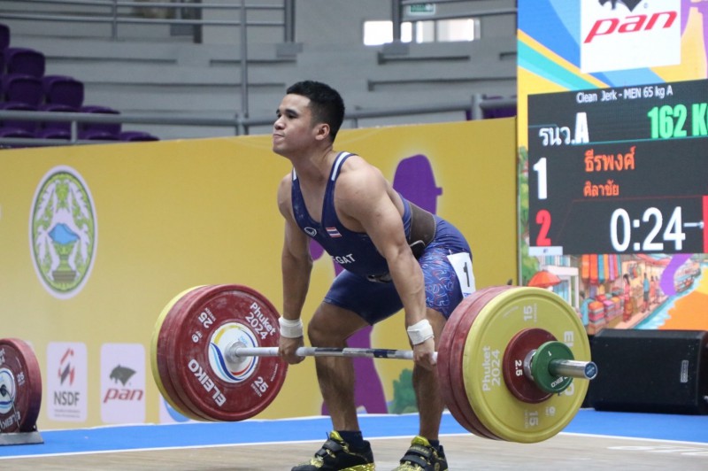 รุ่น 65 กิโลกรัม ชาย “ฟ่าง” ธีรพงศ์ ศิลาชัย เจ้าของเหรียญเงิน “โอลิมปิก 2024” โชว์ฟอร์มสมราคา เหมา 3 เหรียญทอง ให้ต้นสังกัดสโมสรราชนาวี เอ ท่าสแนทช์ 125 กิโลกรัม, ท่าคลีนแอนด์เจิร์ก 162 กิโลกรัม, น้ำหนักรวม 287 กิโลกรัม/ พสิษฐ์ แสงม้า จากไอรอน ไฮวฟ ยิม เอ รับ 3 เหรียญเงิน ท่าสแนทช์ 114 กิโลกรัม, ท่าคลีนแอนด์เจิร์ก 156 กิโลกรัม, น้ำหนักรวม 270 กิโลกรัม/ ภาณุเดช ปานกรด จากโรงเรียนกีฬาเทศบาลนครนครสวรรค์ บี รับ 2 เหรียญทองแดง ท่าคลีนแอนด์เจิร์ก 131 กิโลกรัม, น้ำหนักรวม 237 กิโลกรัม/ เนติพงษ์ จันทร์ประนต จากสโมสรราชนาวี เอ รับ 1 เหรียญทองแดง ท่าสแนทช์ 107 กิโลกรัม