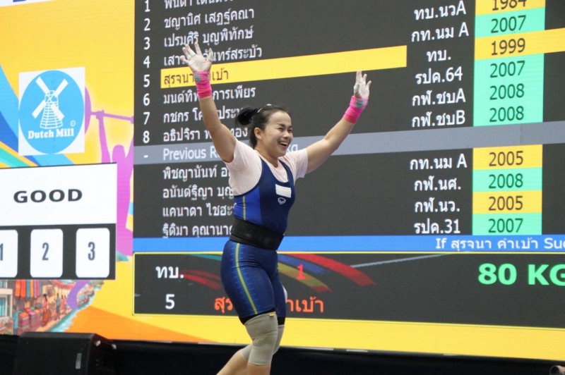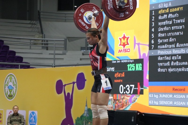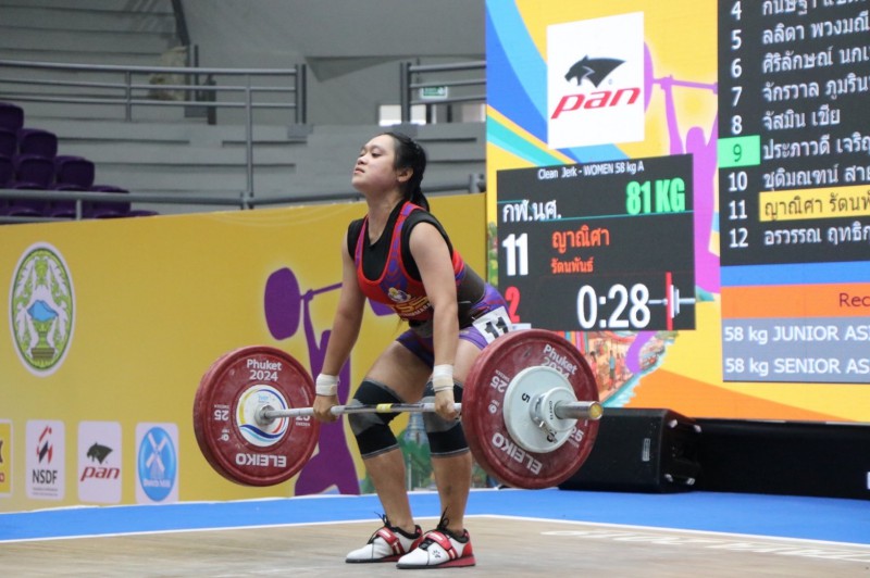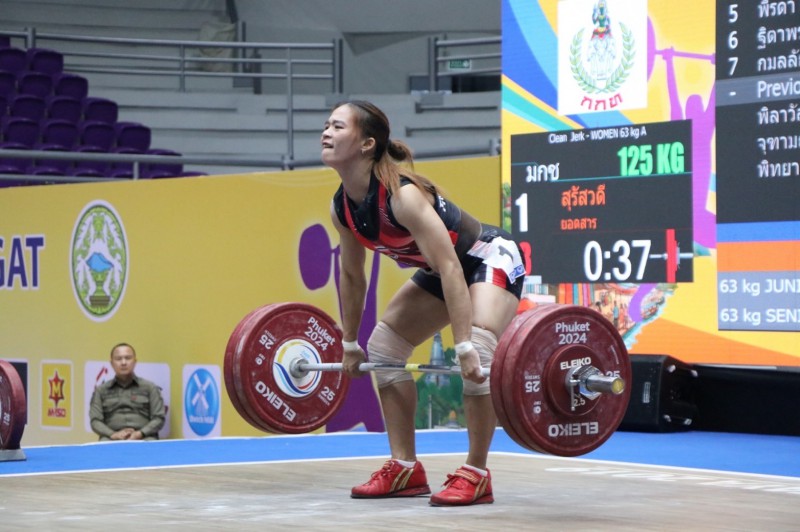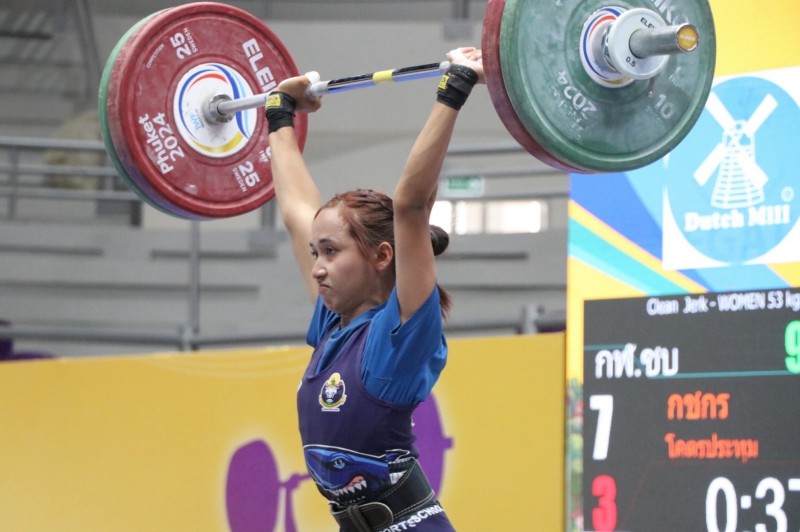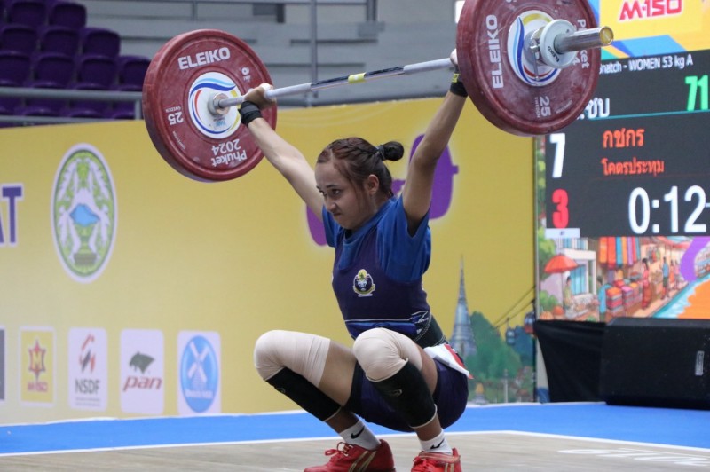 รุ่น 53 กิโลกรัม หญิง “ออย” สุรจนา คำเบ้า ดีกรีเหรียญทองแดง “โอลิมปิก 2024” ลงแข่งชันให้กับชมรมยกน้ำหนักกองทัพบก ไม่ทำให้กองเชียร์ผิดหวัง กระชาก 3 เหรียญทองสำเร็จ สแนทช์ 85 กิโลกรัม, ท่าคลีนแอนด์เจิร์ก 110 กิโลกรัม, น้ำหนักรวม 195 กิโลกรัม/ กชกร โคตรประทุม จาก โรงเรียนกีฬาจังหวัดชลบุรี เอ รับ 2 เหรียญเงิน ท่าคลีนแอนด์เจิร์ก 91 กิโลกรัม, น้ำหนักรวม 159 กิโลกรัม และ 1 เหรียญทองแดง ท่าสแนทช์ 68 กิโลกรัม/ เปรมศิริ บุญพิทักษ์ จากโรงเรียนกีฬาเทศบาลนครนครสวรรค์ เอ รับ 1 เหรียญเงิน ท่าสแนทช์ 72 กิโลกรัม และ 2 เหรียญทองแดง ท่าคลีนแอนด์เจิร์ก 86 กิโลกรัม, น้ำหนักรวม 158 กิโลกรัม