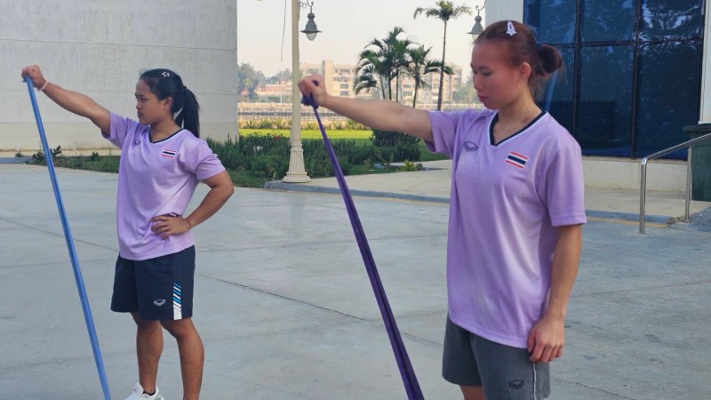 จากนั้นเช้าวันที่ 29 เมษายน 2569 เวลาประมาณ 08.00 น. ตามเวลาท้องถิ่น (ช้ากว่าประเทศไทย 4 ชั่วโมง) ร้อยเอกหญิง พิมศิริ ศิริแก้ว, นางสาวแอนนิภาร์ มูลธาร์ และจ่าสิบเอก ขวัญชัย นุชพุ่ม ผู้ฝึกสอนให้นักกีฬาทั้ง 6 คนประกอบด้วยนางสาวนฤมล วงษ์หาจักร เยาวชนหญิงรุ่น 48 กิโลกรัม, นางสาวสุฑาสิณี แก้วสิงขรณ์ เยาวชนหญิงรุ่น 48 กิโลกรัม, นางสาวณัฐชา แก้วน้อย เยาวชนหญิงรุ่น 53 กิโลกรัม, นางสาวณัฐณิชา การะเกต เยาวชนหญิง รุ่น 63 กิโลกรัม, นางสาวธนพร แซ่เตีย เยาวชนหญิงรุ่น 63 กิโลกรัม และนางสาวณัฐธิดา รอบรู้ เยาวชนหญิงรุ่นมากกว่า 86 กิโลกรัม ลงมาวอร์มยืดคลายกล้ามเนื้อ บริเวณหน้าโรงแรมที่พักหลังจากที่เดินทางเป็นเวลานาน